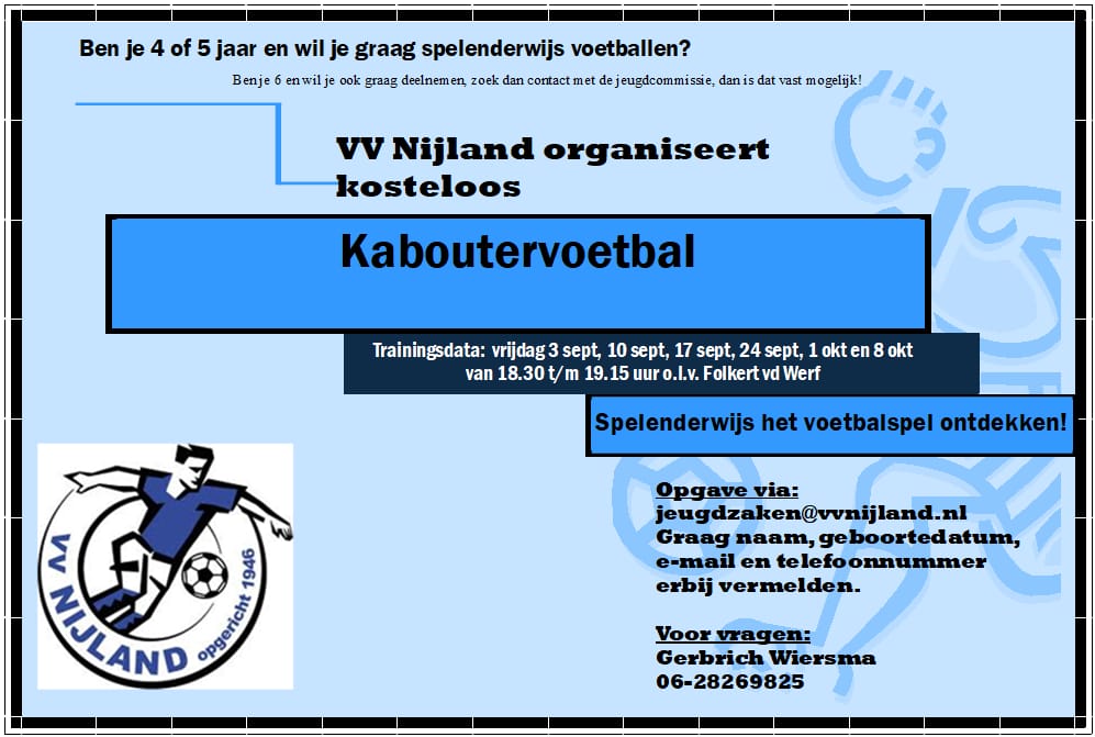 Geplaatst op 26/08/2021 door Wytske HeidaKaboutervoetbal Laat dit veld leeg Schrijf je in om elke week updates te ontvangen. . Controleer je inbox of spammap om je abonnement te bevestigen.