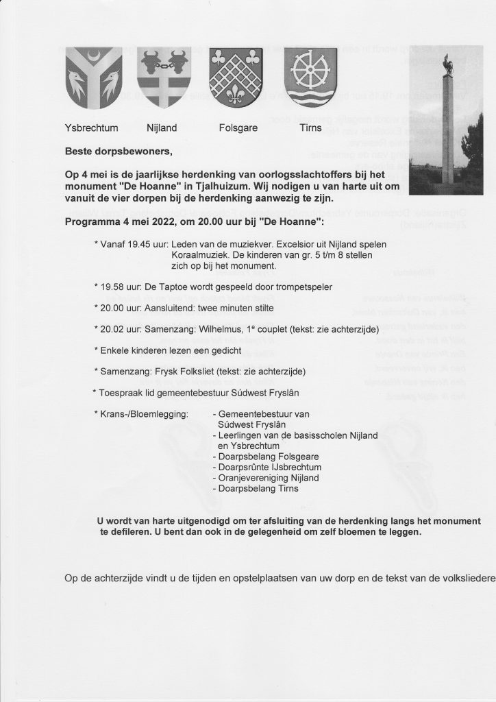 Geplaatst op 27/04/2022 door Wytske Heida4 mei herdenking Laat dit veld leeg Schrijf je in om elke week updates te ontvangen. . Controleer je inbox of spammap om je abonnement te bevestigen.