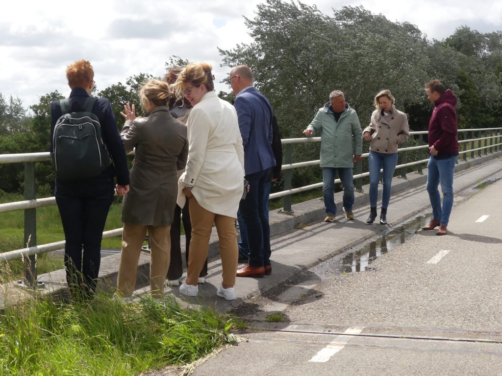 Aansluitend ging het gezelschap het dorp in voor een wandeling over o.a. de Monumentenwei. Zo kon zelf worden ervaren hoe gevaarlijk het wandelen ( en fietsen) over het viaduct kan zijn. Een aantal wegpiraten zorgden er voor dat de bedoeling duidelijk werd. We hopen hiermee te bereiken dat de weg niet alleen in het kader van herstel wordt voorzien van nieuw asfalt, maar tegelijkertijd veiliger wordt gemaakt. Wethouder Michel Rietman zal zich inzetten om de weg veiliger te kunnen laten maken.