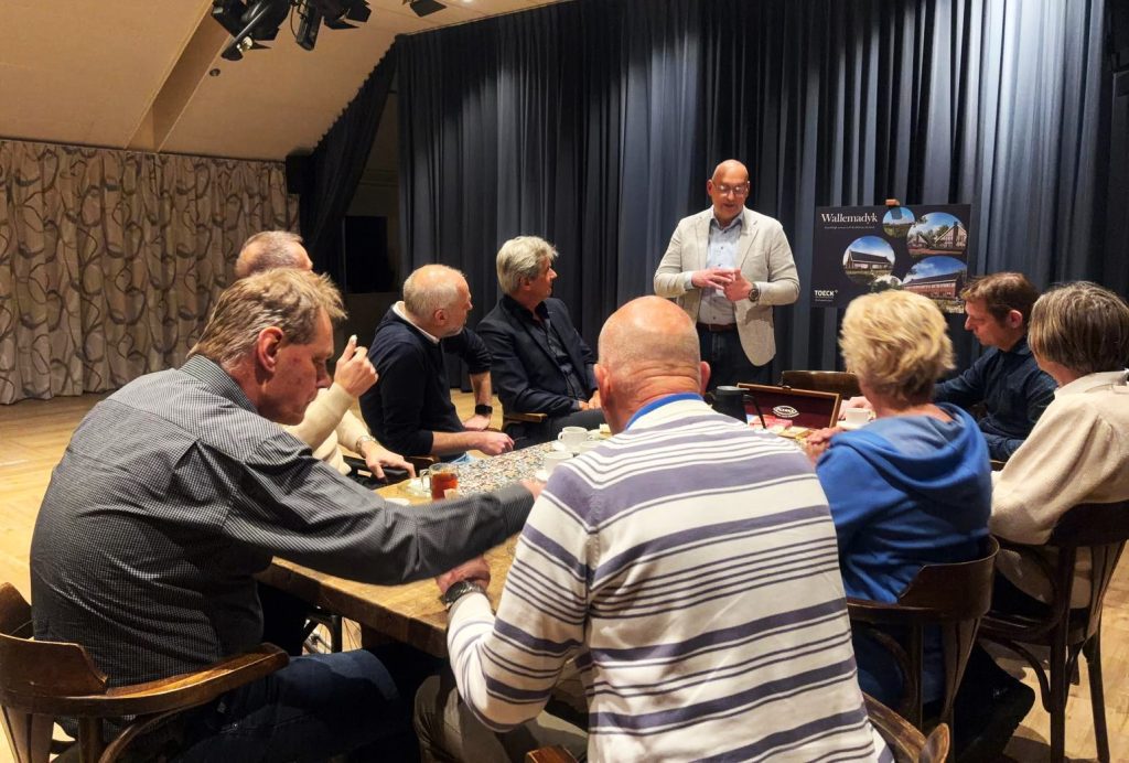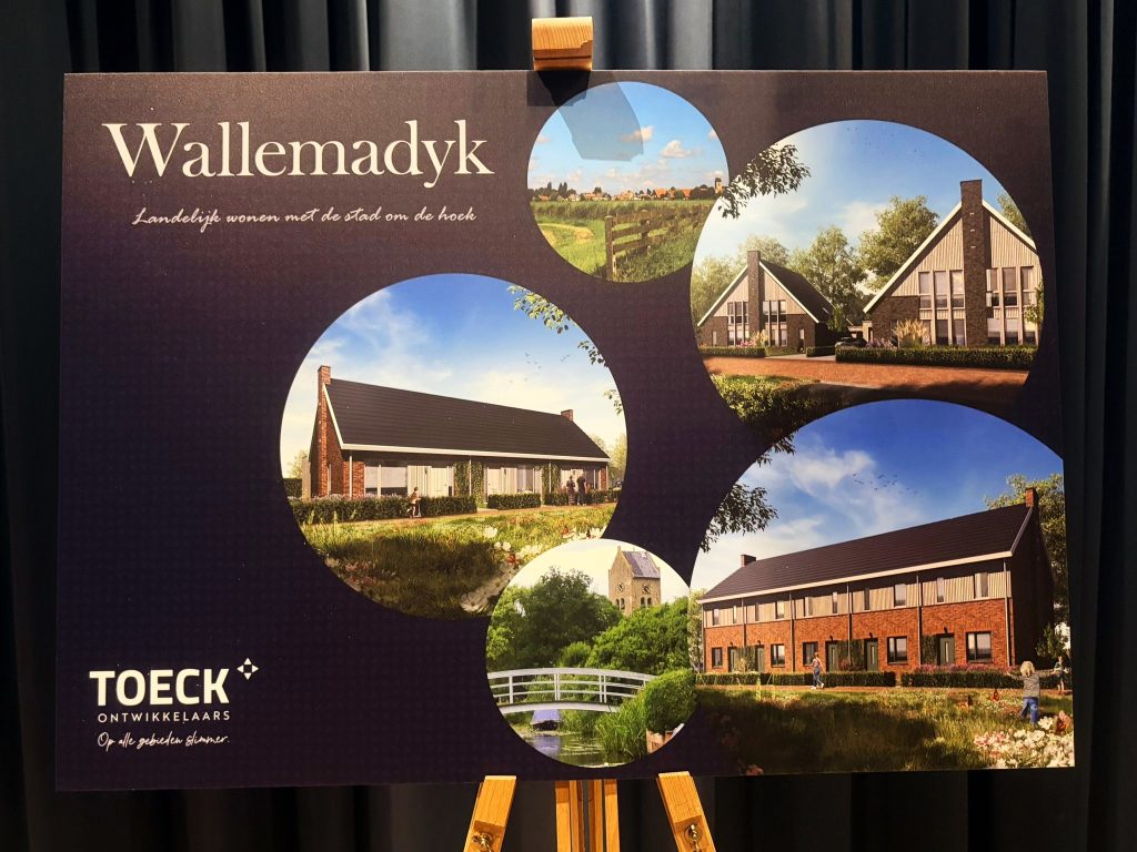 Dennis Heins van Toeck Ontwikkelaars, Burgum gaf vervolgens een toelichting op het door Toeck gemaakte ontwerp voor 17 woningen die aan de Wallemadyk gebouwd zullen worden. Dit ontwerp biedt mogelijkheden voor zowel jongeren als ouderen. Daarnaast komen er ook een aantal twee onder één kap woningen voor gezinnen.