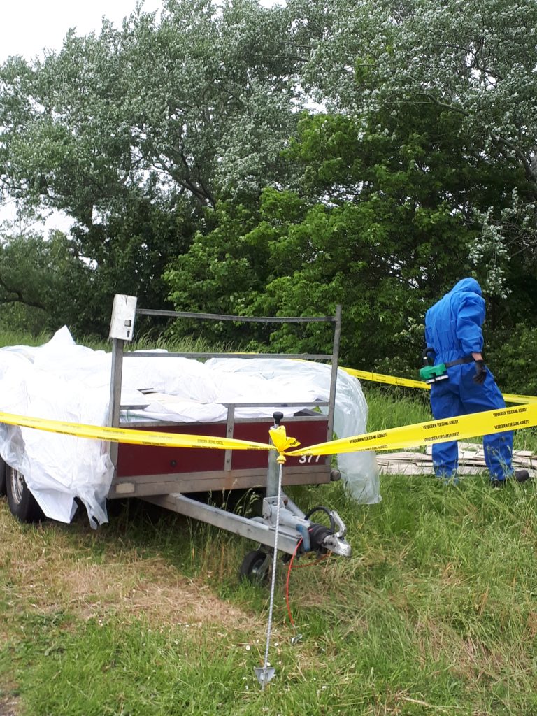 Dinsdagmiddag vanaf circa 13.00 uur is begonnen met het opruimen van de asbestplaten