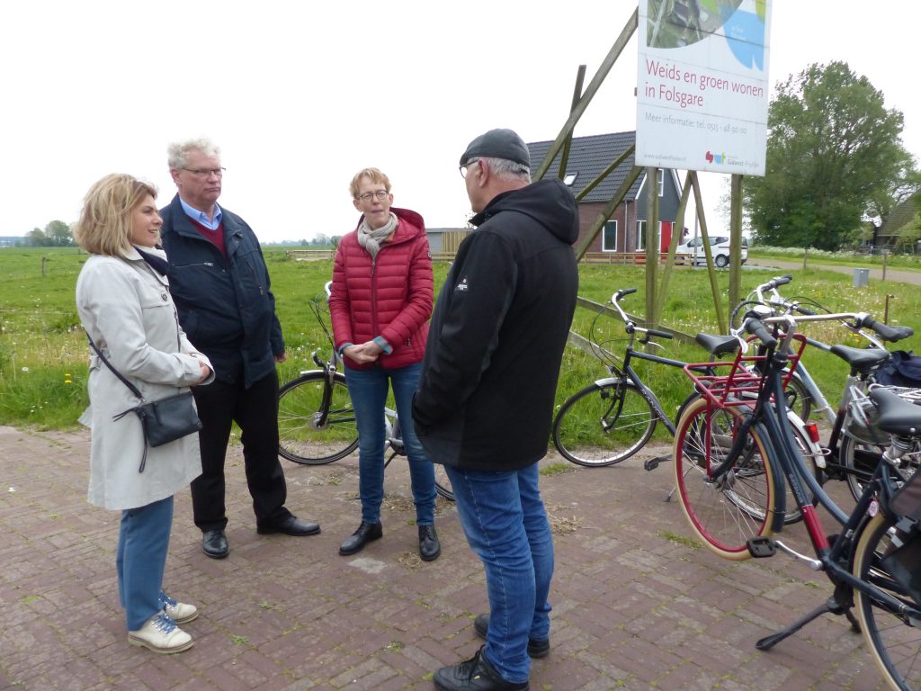 Woensdag 8 mei bracht burgemeester Jannewietske de Vries een werkbezoek aan Folsgeare. Samen met onze dorpencoördinator Lize Cnossen, werd ze opgewacht bij de Hoanne door de aanwezige leden van dorpsbelang. Vervolgens ging het gezelschap op de fiets naar het dorp. Op het viaduct werd de burgemeester bijgepraat over de ontwikkelingen van Hemmen III en de daaruit voortvloeiende inrichting van de bufferzone. De fietstocht ging verder naar de Wallemadyk en daar is ter plekke de stagnerende woningbouw besproken. Afsluitend werd nog een kijkje genomen bij de Mieddyk. Ondanks de voorspelde regen, bleef het tijdens het bezoek gelukkig droog.