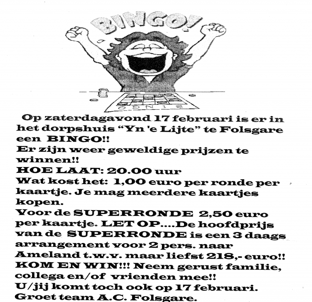 De officiële agenda staat binnenkort op de website www.folsgeare.nl. Houdt u bovendien uw brievenbus in de gaten.