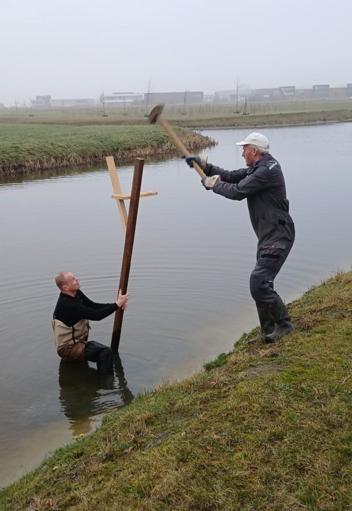 Zaterdag 7 december zijn er door leden van de Vogelwacht IJlst – Oosthem en Omstreken in het Landschapspark 7 eendenkorven geplaatst tussen Strûpenkeal en Carpe Diem. Daarnaast is ook onderhoud gepleegd aan de zwaluwwand in het gebied. De gaten zijn weer goed dichtgestopt. We hopen dat vele paartjes van de oeverzwaluw, net als afgelopen jaar, de wand zullen vinden en een nestje gaan maken.