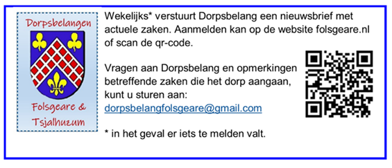 Opmerking: via de mail geen notulen en jaarverslag ontvangen, maar wilt u dat wel? Dat kan. Neem via de mail contact op met dorpsbelangen: dorpsbelangfolsgeare@gmail.com of met één van de bestuursleden.