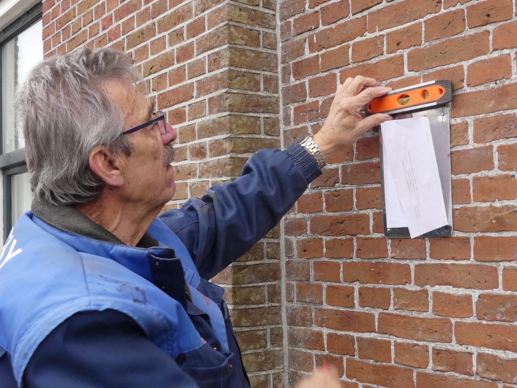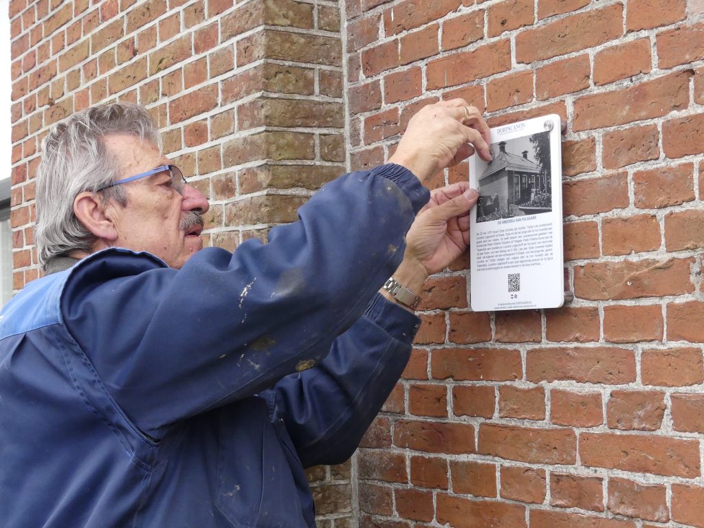 Op dinsdag 26 maart heeft Mario Grims het laatste historische bordje van de eerste serie op de muur van een woning aan de Tsjaerddyk bevestigd. Net als alle bordjes, hangt ook dit bordje helemaal waterpas.
